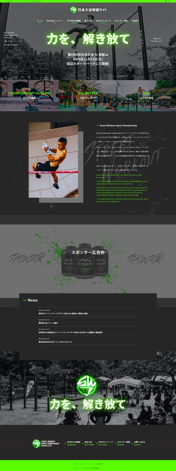 【制作実績】Street Workou Japan Championship 特設サイト|大会ブランディングを強化するサイト制作