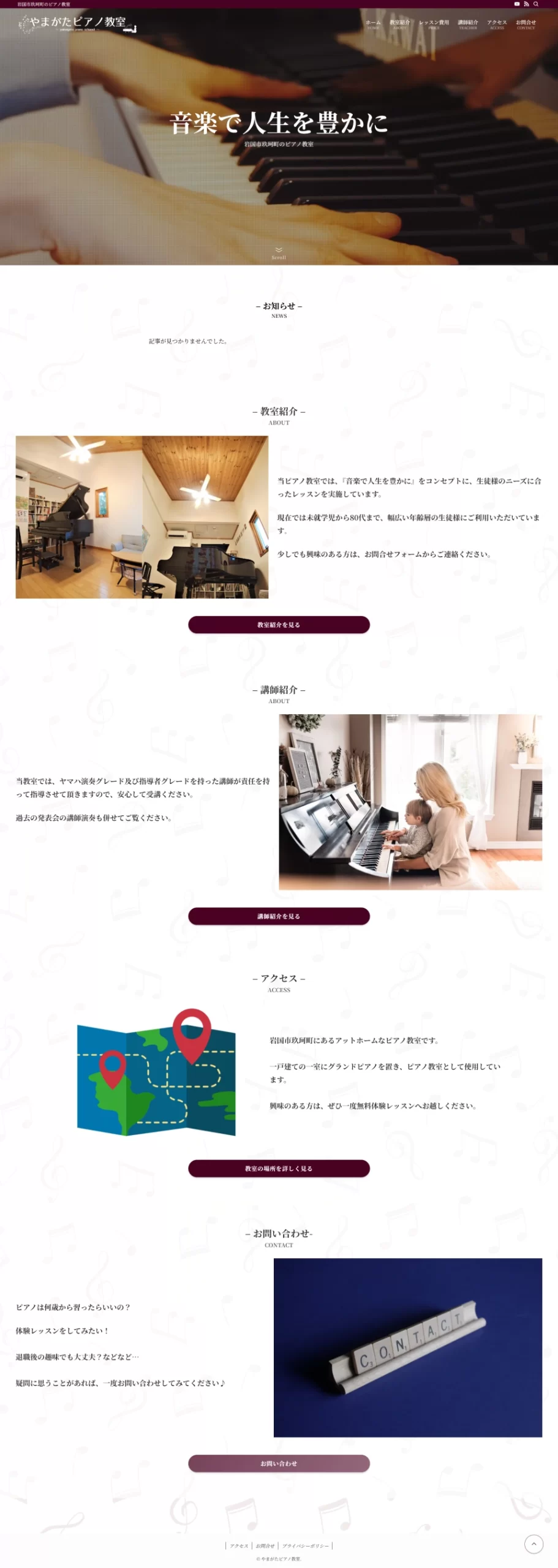 【制作実績】やまがたピアノ教室様コーポレートサイト|音楽の楽しさを伝える学びの場を表現したサイト制作